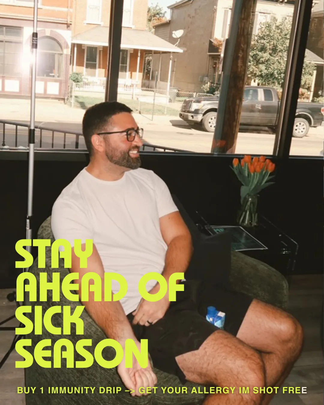 Hydration. Immunity. Allergy relief — all in one visit. Because you don’t have time to get sick.